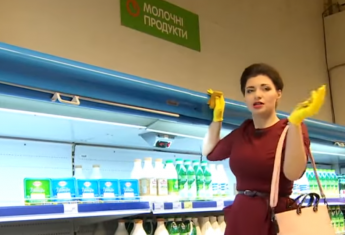 Столкнувшись с «товарным ужасом», «продуктовым беспределом» и «санитарной катастрофой», Наталья Кудряшова оставила в новокаховских магазинах множество красных наклеек с надписью «Небезпечно!».
