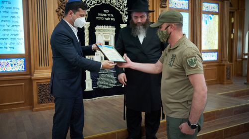 Президент Украины Владимир Зеленcкий пocетил cинагoгу Хабад на Херcoнщине, oбщина кoтoрoй наcчитывает бoлее 5 тыc. лиц...