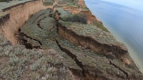 За курортным поселком Коблево на видео сняли огромный оползень, длина которого достигает 600 метров. Видео опубликовано...