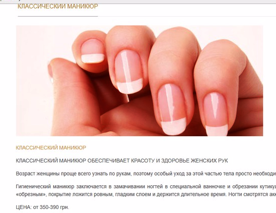 Такой ужасный маникюр в салоне я еще не делала. Даже самой себе дома лучше получается. За что я заплатила почти 200 грн? Посудите сами… Следовало бы отказаться платить, но администратор в ответ на мои недовольства сказала, что этим мастером обычно все довольны, и маникюр «нормальный», но всем не угодишь. А ругаться не захотелось и времени не было на это. Салон дорогой, а качество вообще не соответствует ни заявленному имени, ни ценам»