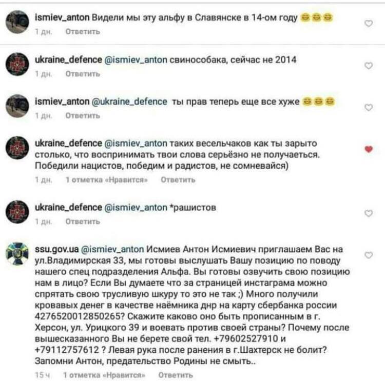 Служба безопасности Украины поставила на место сепаратиста "ДНР", ответив ему в комментариях в соцсети и показав, что знает о наемнике всю важную информацию.