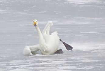 Пораженный увиденным, сельчанин выбрался на хрупкий ледовый покров, ежеминутно рискуя сам провалиться в студеную воду. И сумел вытащить оттуда птицу, которая снова взлететь уже не смогла. Она явно выглядела больной, поэтому спаситель лебедя позвонил в заповедник Аскания-Нова, и попросил его забрать для выхаживания.