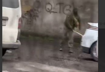 Народний депутат Олексій Гончаренко розмістив у своєму телеграм каналі відео того, як люди у військовій формі блокують автомобіль та б'ють його дубинами .