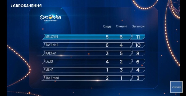 По результатам зрительского голосования, а также голосования жюри, в состав которого в этом году вошли Джамала, Андрей Данилко и Евгений Филатов (The Maneken), MELOVIN получил навысшее количество баллов – 11.