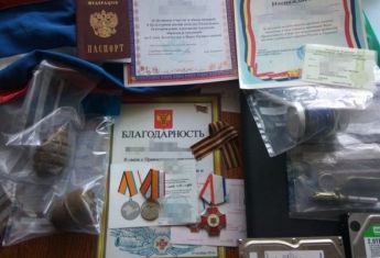 По данным СБУ, во время следственных действий правоохранители обнаружили ведомственную медаль Министерства обороны РФ "За возвращение Крыма", медаль так называемой "Республики Крым" "За защиту Крыма" с соответствующими наградными документами, справку исполкома одного из поселковых советов АР Крым об участии злоумышленника в обеспечении общественного порядка на избирательном участке, паспорт гражданина РФ и страховое свидетельство РФ о пенсионном обеспечении.