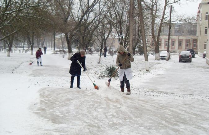 В "Тропиных" сотрудники расчищают территорию, в травмпункте первые пострадавшие скользкой погоды.