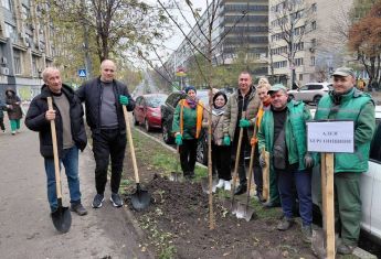 Команда Гуманітарного центру допомоги херсонцям «Вільні разом» у Києві висадила алею молодих дерев.