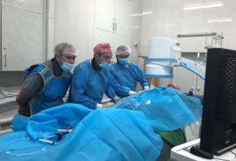 Поэтому по месту жительства сосудистые хирурги отказали пациенту в хирургическом решении проблемы. Но человек все же нуждался в помощи и в больнице Карабелеша было принято решение попробовать эндоваскулярный подход. Это когда через прокол плечевой артерии вводят специальные инструменты для артерий в животе, питающих левую нижнюю конечность. Была выполнена реканализация (восстановление просвета артерий к ноге) с установкой специальных стентов с лекарственным покрытием.