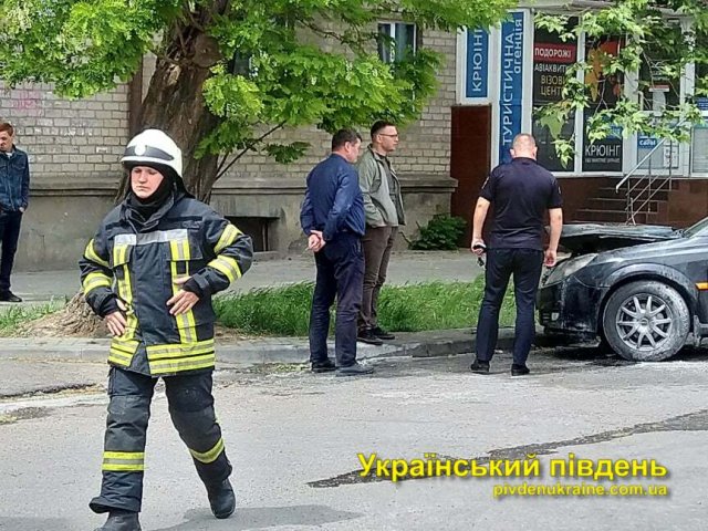 На место быстро приехали пожарные, которые пытались выбить окно, чтобы потушить капот автомобиля, пишет УкраЇнський південь.