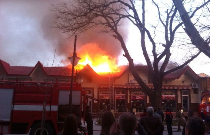 В центре Херсона на улице Суворова горит кафе Анталия. Причины возгорания пока неизвестны.
