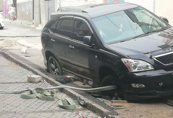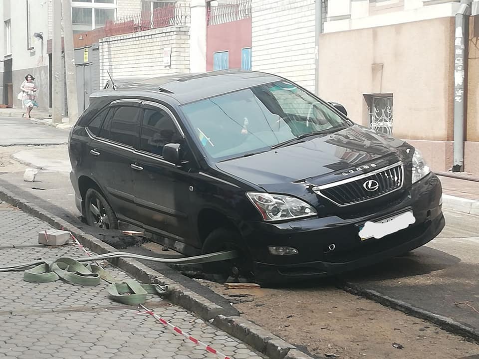 В центре Херсона провалилась половина "Лексуса": слава Богу не глубоко