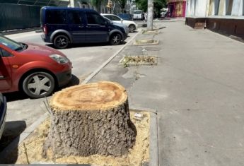 В Херсоне на ул. Октябрьской революции неподалеку от перекрестка с ул. Советской спилены 4 дерева.