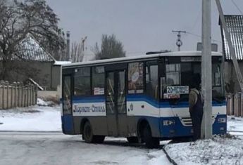 В Херсоне маршрутный автобус въехал в столб. Несмотря на то, что сегодня все дороги активно посыпаются песчаной смесью и расчищаются, водитель этой маршрутки все-таки не справился с управлением.