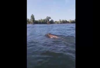 Херсонские дачники сняли интересное видео, на котором видно, как дикий кабан плывет через Днепр.