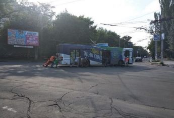 Сегодня в Херсоне поломался один из троллейбусов. Казалось бы, ничего страшного - техника, как известно, имеет свойство ломаться. Но курьезность ситуации в том, что машина оформлена, как передвижной символ местной футбольной команды МФК "Кристалл". Поэтому всегда привлекает к себе больше внимания. Но особенно занимательно выглядит на фоне толкающих троллейбус людей, написанный здесь же слоган "Одна команда - один город". Именно он вызвал иронию у пользователей соцсети, где Ярославом Концевым было размещено фото увиденного. "Командная работа", - такими словами сопроводил он его. Но где ж команда, недоумевают в комментариях пользователи. Похоже, что в ее составе исключительно сотрудники ГКП "Херсонэлектротранса" и неравнодушные к технике горожане. Что ж, и у херсонского МФК бывают "поломки", а всем давно известно: как вы лодку назовете, так она и поплывет.