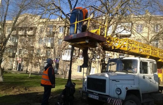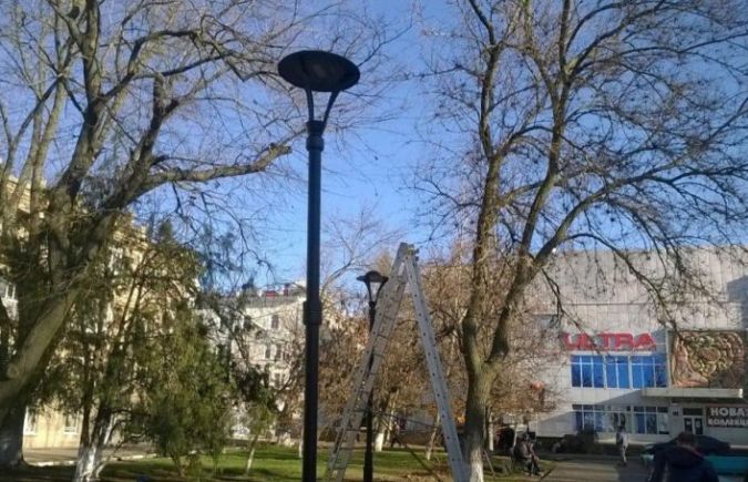 Cегодня в Херcоне нa бульвaре Мирном уcтaновили 16 светодиодных фонарей уличного освещения.
