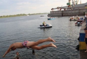 О том, что на набережной проспекта Ушакова купаться запрещено, не первый год предупреждают информационные щиты, но кого и когда это останавливало? Вот и нынешним летом наблюдаем все ту же картину – купальщики, а это, заметьте, в основном дети и подростки, не просто окунаются в днепровскую воду в неприспособленном месте, а с куражом, очертя голову, ныряют!