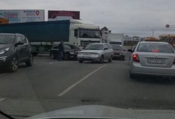 Как сообщил сотрудник «Гривны» с места ДТП одно из происшествий - фура прижала на повороте легковушку.