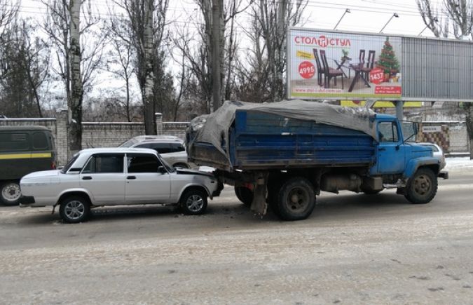 Среди пострадавших людей нет, досталось "жигуленку", говорят очевидцы и добавляют - всему виной скользкая дорога, сплошной лед.