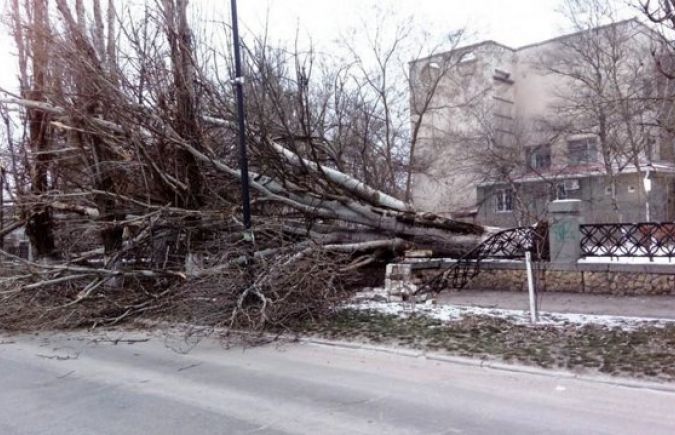 В Херсоне ночью ветер вырвал с корнем огромное дерево у детской областной больницы