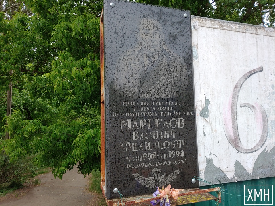 Стенд рядом с мемориальной доской полностью ободран. Работники Дворца молодежи и студентов рассказали, что таким он был и на День Победы в Великой Отечественной войне.