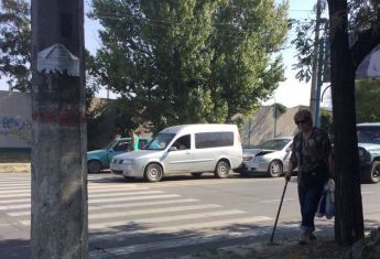 Около автозаправки «ОККО» пенсионерка с палочкой (на фото внизу) переходила дорогу по пешеходному переходу. Водитель «пирожка», видимо, поздно заметил старушку на переходе и резко затормозил перед «зеброй». А за ним впритык, не соблюдая дистанцию, ехал «Мерседес».