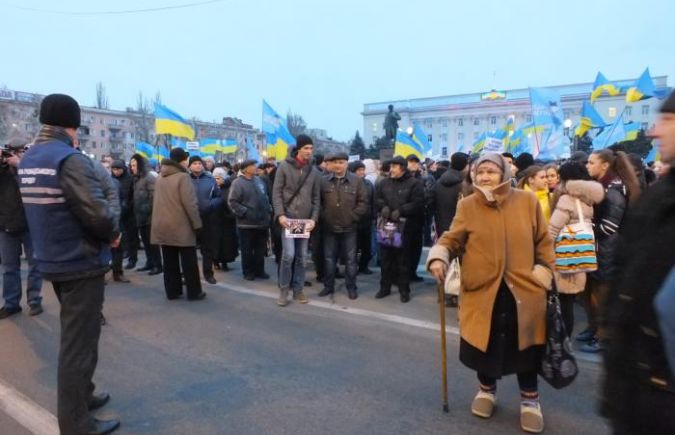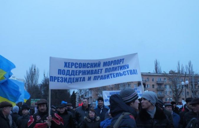 Сегодня, 6 декабря, на площади Свободы, перед зданием Херсонской областной государственной администрации и Херсонского областного совета, в 16:00 собралось более 10 тыс. человек в поддержку деятельности Президента Украины Виктора Януковича и Правительства, а также с целью обнародования своих позиций относительно событий, которые сейчас происходят в государстве.