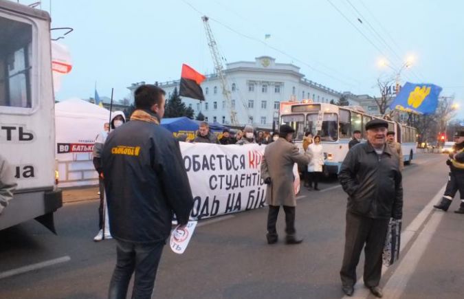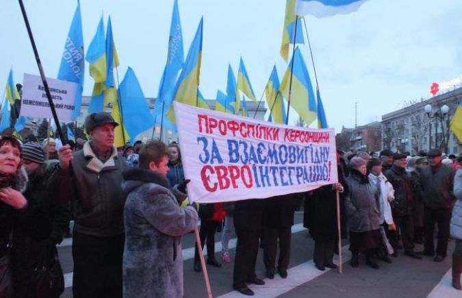 На мероприятии было заявлено, что профсоюзные организации промышленных предприятий, структур и организаций Херсонщины осуждают любые попытки обострения ситуации в обществе, ведь подобная позиция подрывает, в первую очередь, экономику страны, нарушает слаженный рабочий процесс, который может привести к кардинальному снижению уровня социальной защиты граждан. На противоположной стороне площади Свободы разместились сторонники Евроинтеграции.