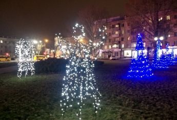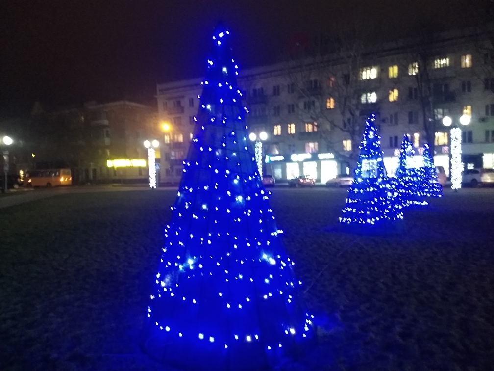 Кроме синих елочек здесь засветились и белые ангелы. Напомним, в этом году впервые за последние лет 10 елка на пл. Свободы со стороны ОГА нет.
