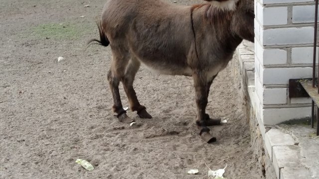 В Херсоне в зооуголке Гидропарка живет ослик с необычными копытами.