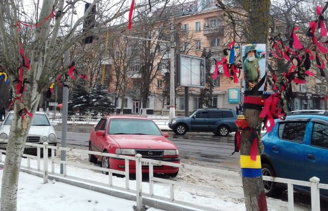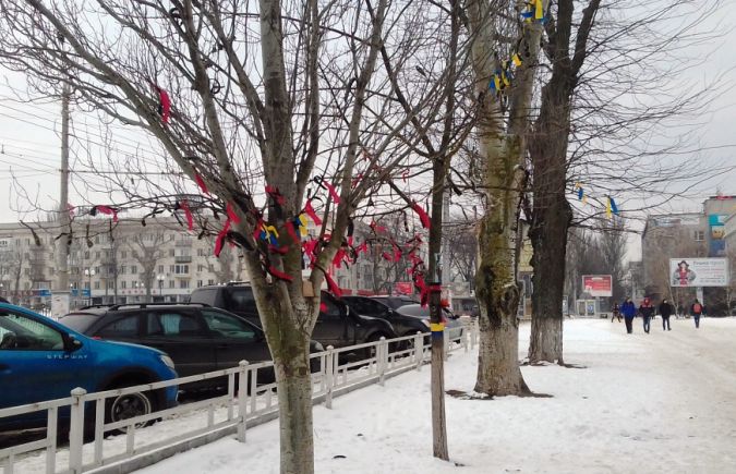 В центре Херсона расцвели лентами зимние деревья - так собратья чтят память Гахи.