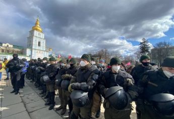 Участников женского марша правоохранители оцепили по кругу чтобы избежать провокаций со стороны националистов.