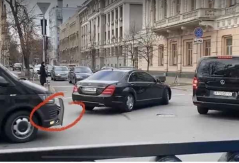 Прокладывал путь для президента Volkswagen с синими госномерами и проблесковым маячком на крыше. Такое авто обычно называют «кукушкой». А замыкали колонну два микроавтобуса с бодигардами. На одном из бусов заметили необычную деталь.