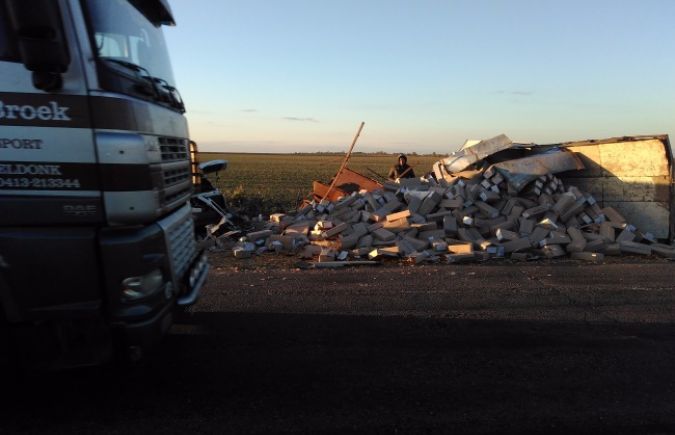 Сам же грузовик вылетел на обочину, где опрокинулся набок.