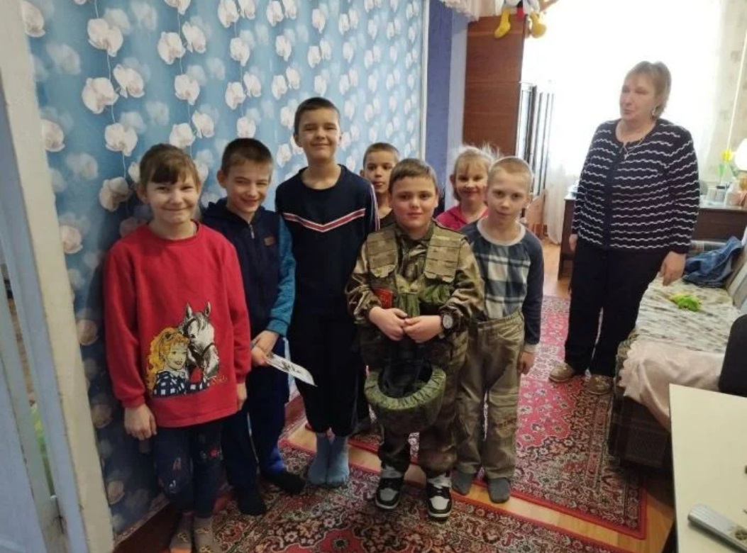 Для агитации наряжают ребенка в военную форму и возят по интернатам. Там детвора читают лекции о "священной войне за родину", и убеждают их, что их родителей убили "укрнацисты".