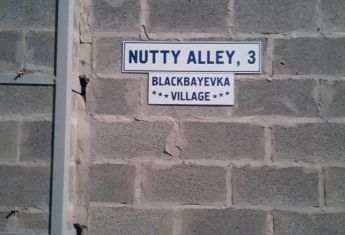 Херсонец Максим Пованда опубликовал фото в соцсети «Фейсбук», на котором на табличке, прикрепленнной к забору жилого дома в селе Чернобаевка Белозерского района, название села и улицы написаны якобы на английском языке.