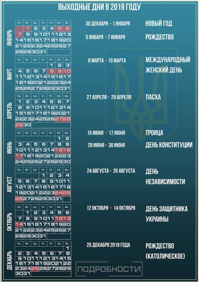 В Украине официально утверждены 14 дней государственных праздников, которые являются выходными.