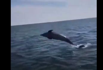 На видео видно, что он с радостью показал настоящее представление для людей, плавал под водой, выпрыгивал из нее и показывал интересные трюки. Отдыхающие восторжеными возгласами встретили дельфина.