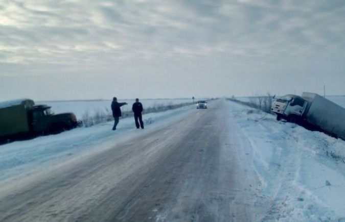 Вследствие сложных погодных условий и местами из-за неудовлетворительного состояния дорожного покрытия за небольшой промежуток времени два грузовых автомобиля съехали с трассы. Спасатели с помощью техники повышенной проходимости и буксировочного троса помогли вытащить грузовик на дорогу.
