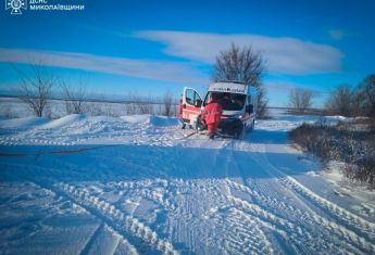 На спецлінію 101 надійшло повідомлення про те, що біля села Кам'яно-Костувате Новомаріївської громади Вознесенського району у сніговому заметі застряг автомобіль екстреної медичної допомоги.