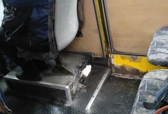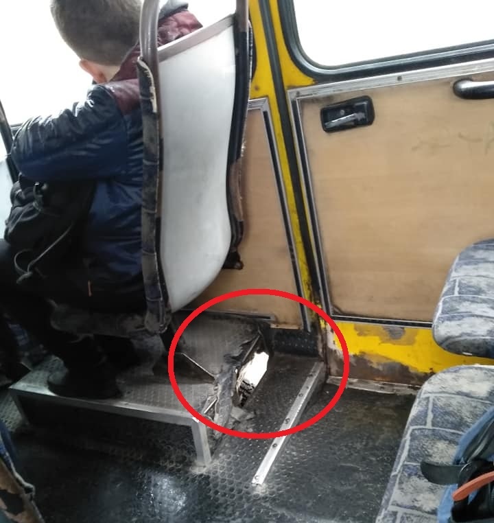 В херсонской маршрутке №17 сквозь дыру в полу видны колеса.