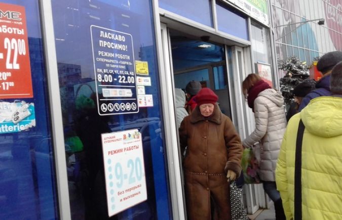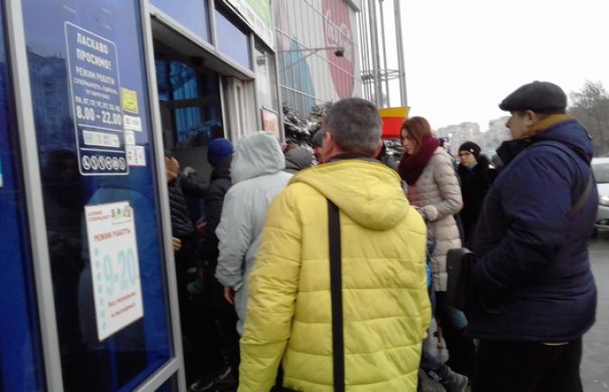 Ни войти, ни выйти - уже несколько раз на протяжении прошедшей недели стеклянная дверь популярного среди жителей мкрн. Таврический торгового центра отказывалась им служить. Под ледяным вором спокойного как статуя охранника, как будто не замечающего беспоряка, люди тщетно пытались дверь приоткрыть. За несколько минут борьбы успевала скопиться очередь и снаружи, и внутри.И как только открыть удалось - люди ринулись наружу.