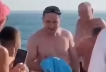 Президент Украины Владимир Зеленский вместе с руководителем своего офиса Андреем Ермаком искупались в Черном море во время визита в Одессу.