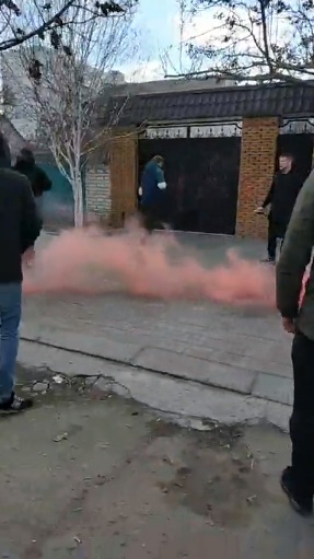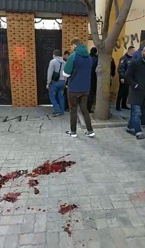 Они зажгли дымовые шашки и обрисовали забор и ворота надписями: «Убийцы должны сидеть», «Кто заказал Катю Гандзюк» и «Здесь живет убийца».