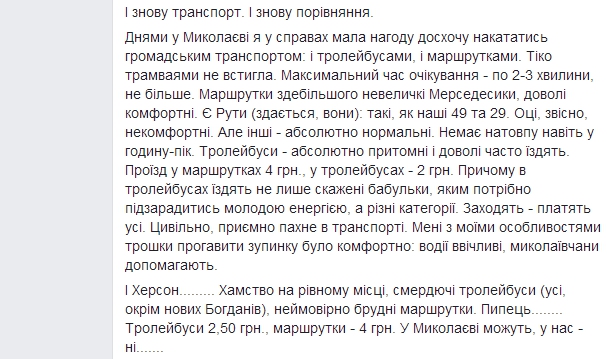 Жительница Херсона побывала в Николаеве и осталась довольна работой общественного транспорта и маршруток.
