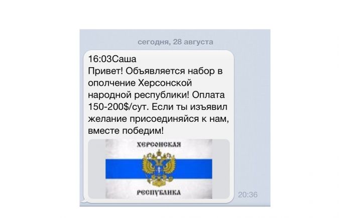 В социальной сети ВКонтакте херсонцам начали приходить сообщение, в которых предлагают за финансовое вознаграждение вступить в ряды Херсонской народной республики.