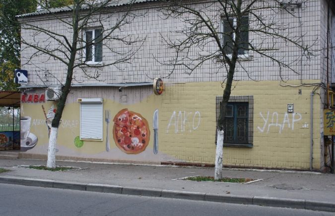 Не исключением стал и Херсон, где с прошлой недели сначала стали появляться листовки. И вот этой ночью были обрисованы из баллончиков кафе «Комильфо», которое принадлежит дочери лидера областной организации партии «УДАР» Михаила Фабрина – Алене Фабриной и кафе «Драйв», принадлежащее руководителю Днепровской районной организации «УДАР» Святославу Баеву.