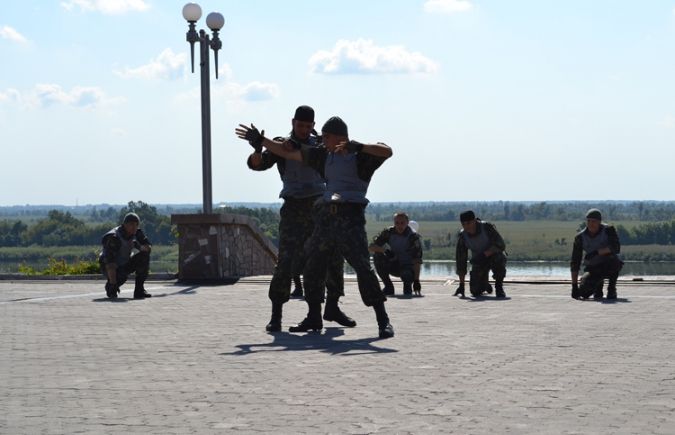 После принятия присяги были представлены показательные выступления инспекторов-кинологов и сводного отряда быстрого реагирования при управлении ГПтС Украины в Херсонской области.
