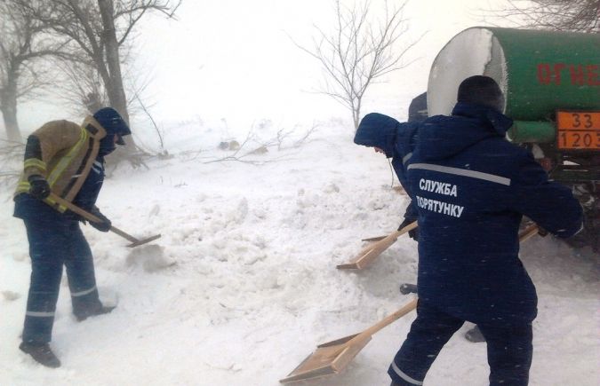 Сегодня, в полдень на пульт связи Государственной пожарно-спасательной части Бериславского района поступило сообщение о том, что вблизи села Тягинка на трассе Херсон - Геническ съехал с трассы и застрял в снежном сугробе бензовоз марки «ГАЗ-53».