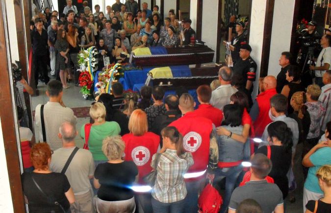 5 сентября в 11:00 в помещении Областного дворца молодежи прошло прощание с погибшими бойцами батальона особого назначения «Херсон» — рядовым милиции Павлом Мазуром и рядовым милиции Владиславом Ковалевым..